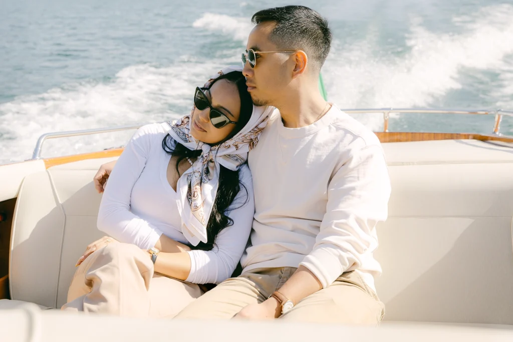 Golden hour on the water. Light behaves differently on water. It multiplies, it shifts, it turns ordinary afternoons into something extraordinary. If you are planning to document your proposal — and we strongly recommend you do — a boat at sunset gives photographers a canvas that is almost impossible to replicate elsewhere.