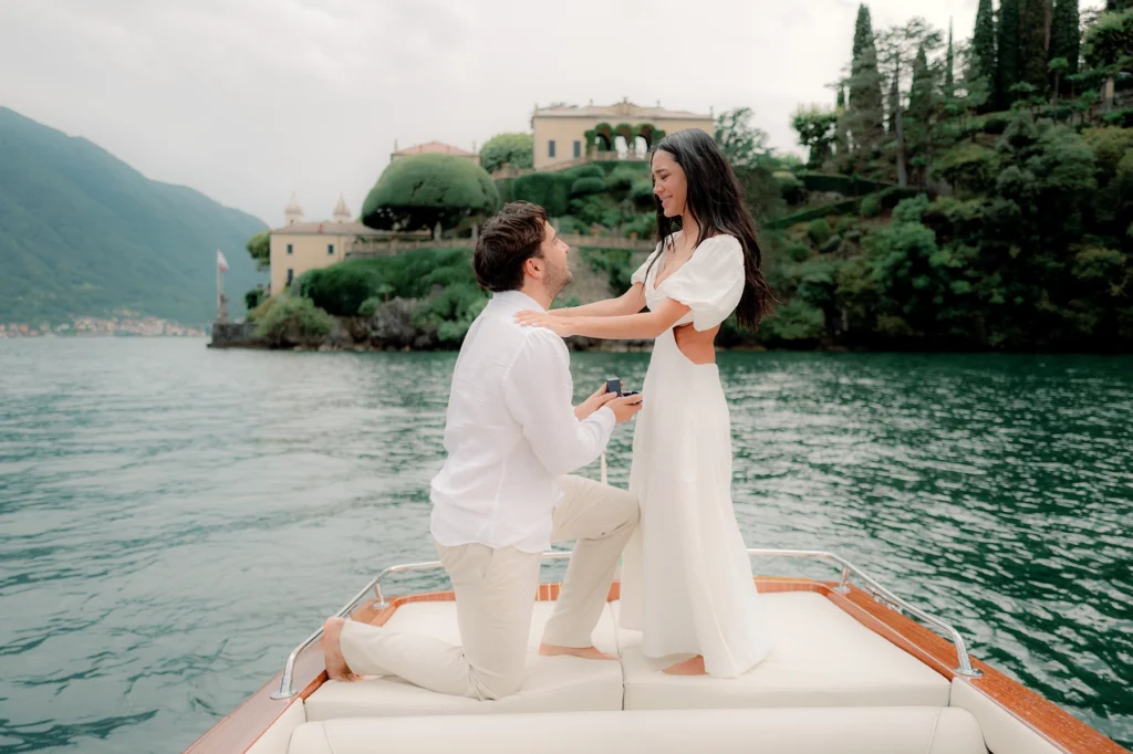 A story worth telling. Years from now, when you describe how you got engaged, “on a boat on Lake Como, in front of Villa del Balbianello” is a sentence that will never get old.