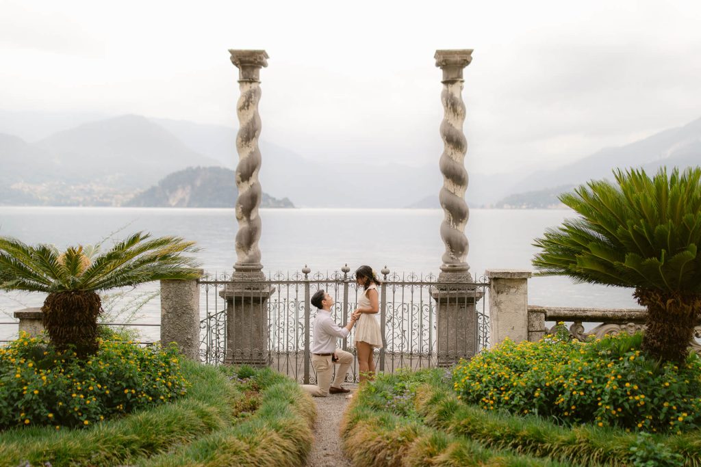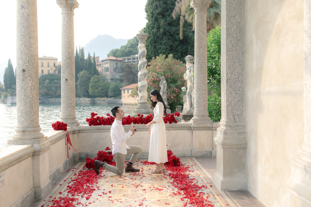 The most iconic proposal venue on Lake Como. Perched on a narrow peninsula, with terraced gardens and the famous Loggia Durini draped in ancient boxwood.